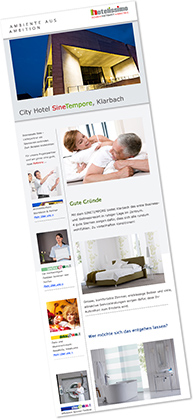 e Mail Adressen nutzen Sie konventionell (Nachrichten werden auf Ihre Adresse umgeleitet) oder via autoresponse Funktion mit (Back)Links zu angebotsbezogenen Seiten Ihrer Homepage. Testen Sie oberberg@hotelissimo.de