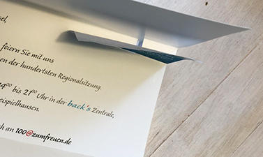 Das System-Mailing wird über den Büro-Drucker auf etwas schwererem Papier einfach ausgedruckt. (Schlitzung und Perforation laufen plan mit).
