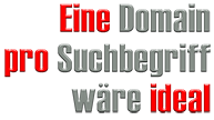 Früher brauchte man eine starke Domain bloß zu registrieren, heute muß man dafür viel Glück haben. Wir haben viele, sehr gute Domains schon vor 20 Jahren registriert! Deshalb können wir sie heute zur (zeitlich unbegrenzten) Nutzung anbieten.