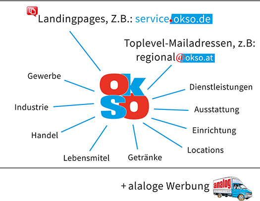 Wofür z. B. die"service.okso.de und eine Mailadresse wie regional@okso.at stehen, erklärt sich von selbst.